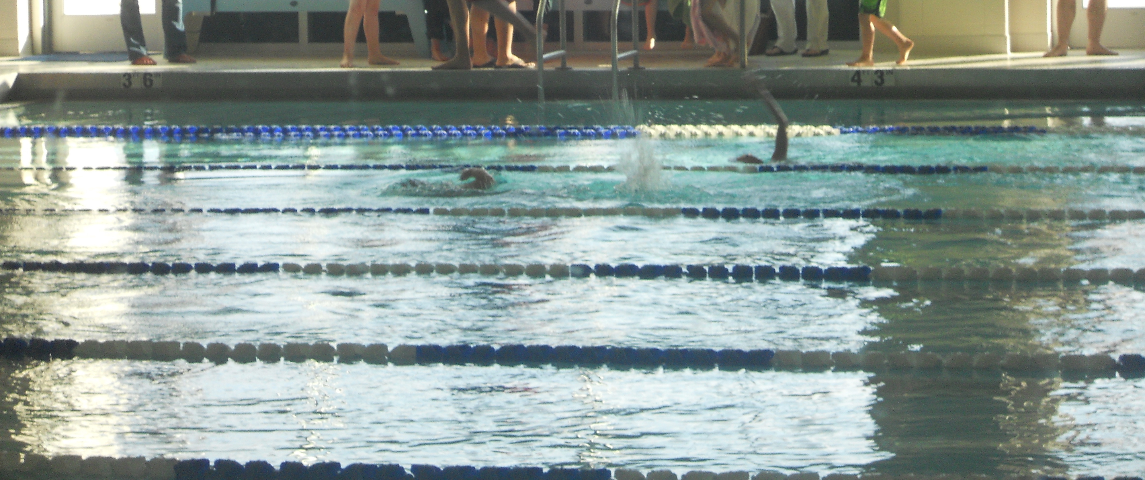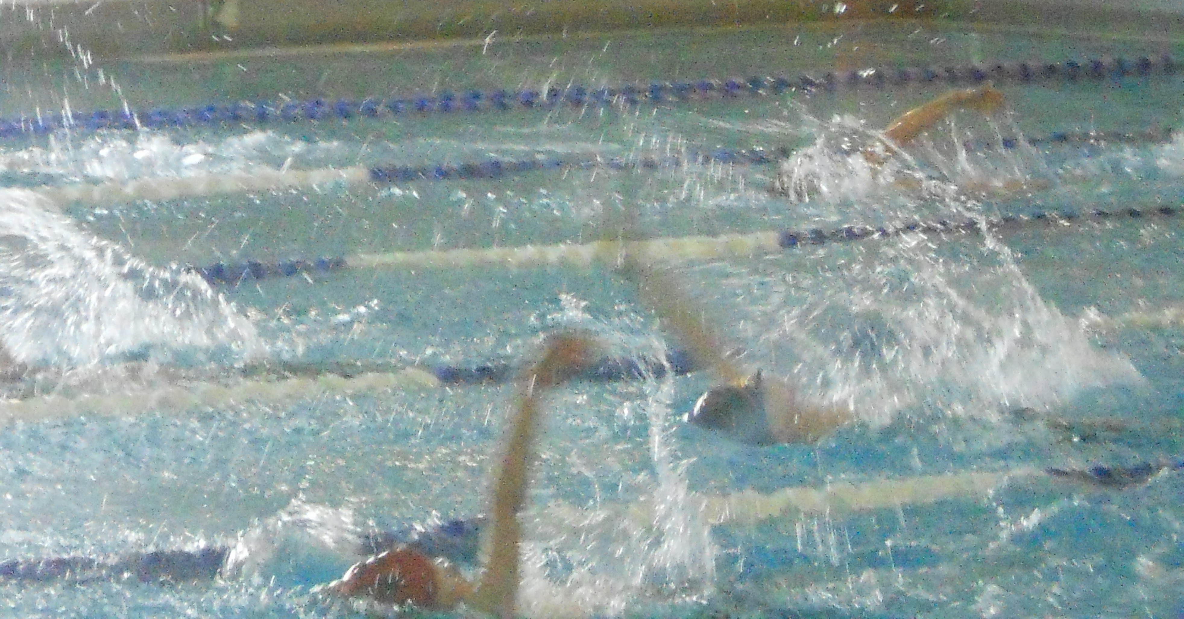 Water splashing everywhere. Kicks and reaches, pulls and gasps for breath throughout the pool. Anxious Moms scan the lanes.