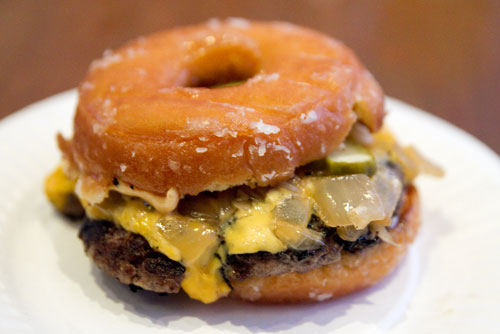 Is that a BURGER inside a doughnut?!? I’m sorry. I love donuts and bugers, but those two tastes sound nasty together.