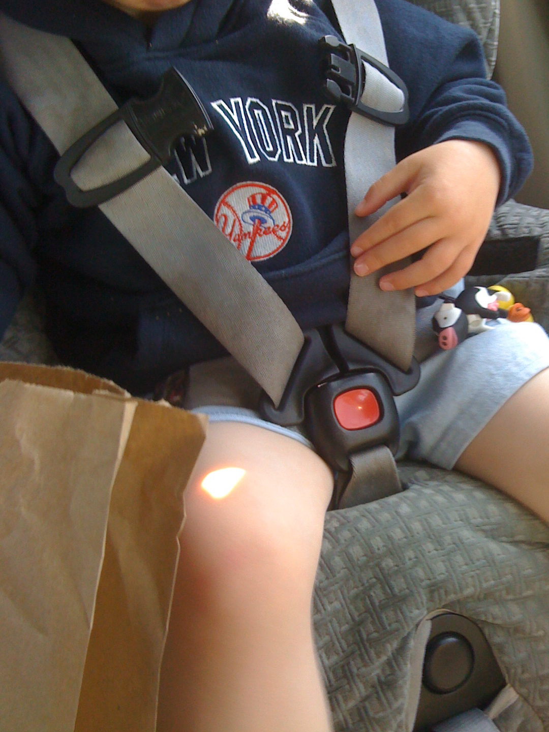 I’ve written before about how Little Brother and I take a twice-weekly pilgrimage to Dunkin’ Donuts after Big Brother is dropped at school.   Today, LB was wearing his Yankees sweatshirt.