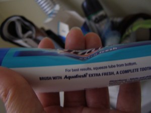 But, this time was different. Let me tell you, I’m good at toothpaste eeking. I can fold that baby six ways from Sunday. I rarely lose the toothpaste battle. But, damn, I swear I thought I’d had him days ago and every time I returned to the sink the paste was still there. Wow. Impressive, Husband. But, I will not be defeated. And, I’d fold and bend and squeeze and press and Yes! Enough to at least make a little foam. Now, I had him. No doubt about it.
